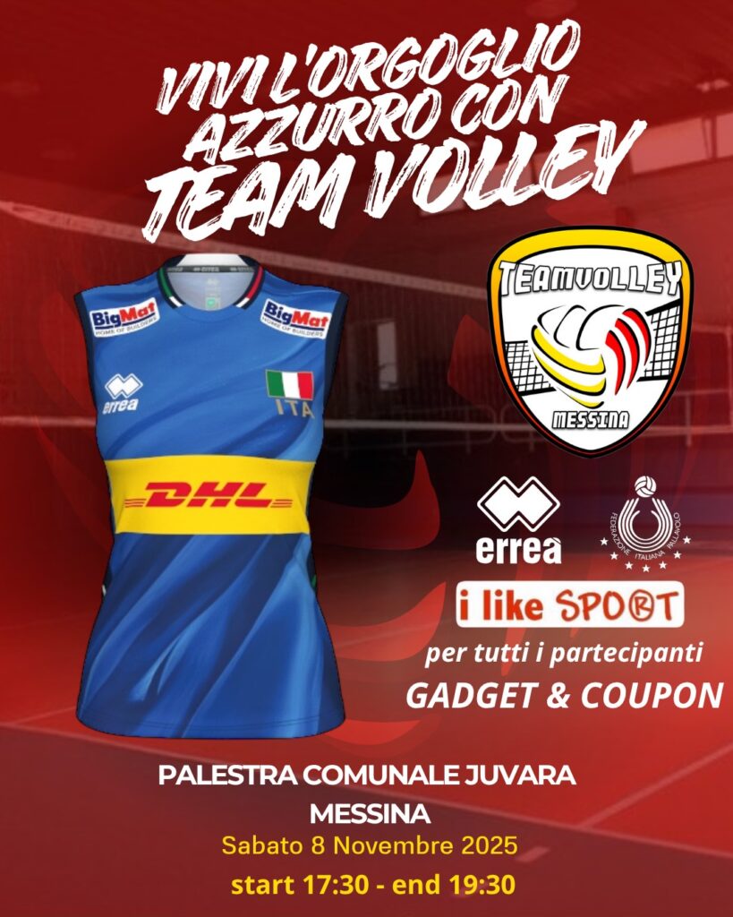 Un pomeriggio, dalle ore 17:30 alle 19:30, dedicato ad atleti, famiglia dirigenti non solo della società biancorossa ma aperto a tutte le società del territorio che sono invitate per l’occasione. Gli atleti della Team Volley Messina sfileranno indossando le maglie della nazionale e non solo e per tutti i presenti ci saranno gadget e coupon da utilizzare presso il punto vendita “I Like Sport”.