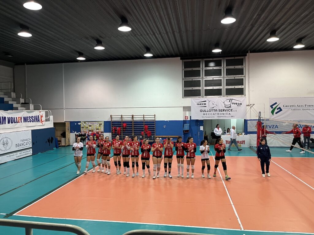 Buona prestazione di tutta la squadra per aggiungere questo primo punto in campionato con Francesca Romeo, under 18, al palleggio che si sta ritagliando un ruolo sempre più da protagonista e che ha ben servito le compagne. Savarese realizza 20 punti personali, capitan D’Amico 17, le centrali Baldaro e Gironi si fermano entrambe a 6 murando spesso e volentieri. Buona partita al servizio con Randazzo che subisce 19 ace, altro lato della medaglia qualche errore per la Team Volley Messina proprio in battuta (17).